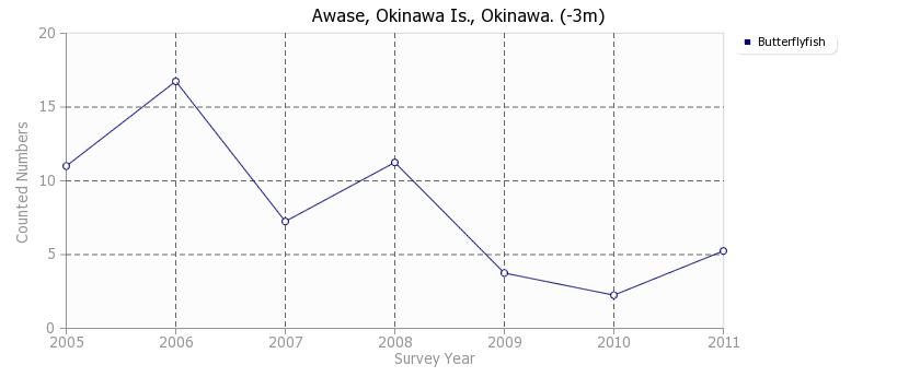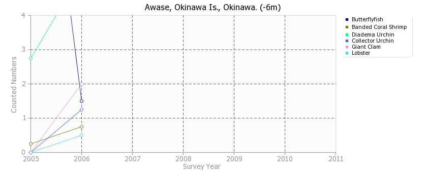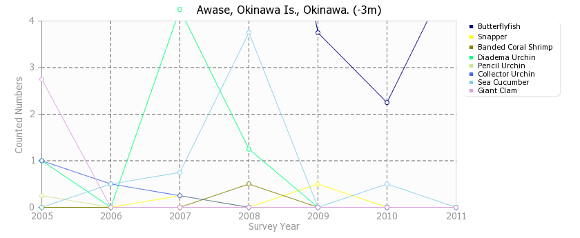 カウントなし:イサキ類(コショウダイ類), サラサハタ, ハタ類(30cm以上), メガネモチノウオ, カンムリブダイ, ブダイ類(20cm以上), ウツボ類, オニヒトデ, ホラガイ, イセエビ類