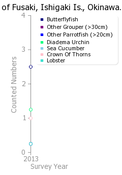カウントなし:イサキ類(コショウダイ類), フエダイ類, サラサハタ, ハタ類(30cm以上), メガネモチノウオ, カンムリブダイ, ウツボ類, オトヒメエビ, パイプウニ, シラヒゲウニ, ナマコ類, オニヒトデ, ホラガイ, イセエビ類