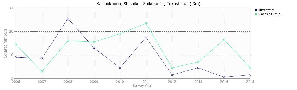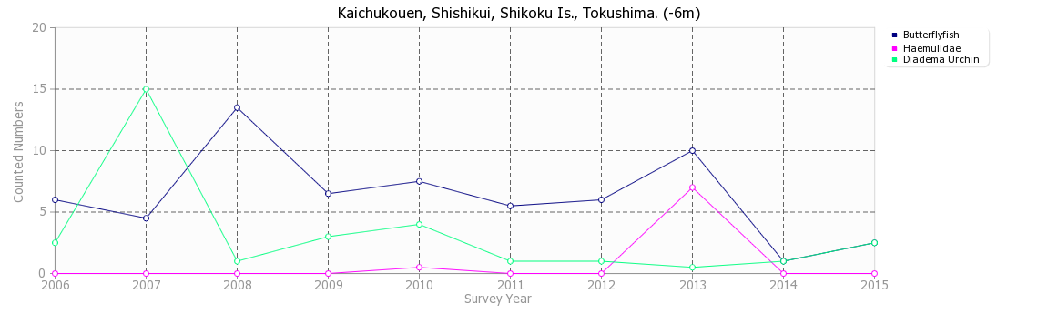リーフチェック 宍喰(50m) (四国) 魚類・無脊椎動物の経年変化