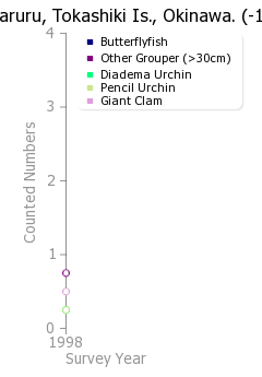 カウントなし:イサキ類(コショウダイ類), フエダイ類, サラサハタ, メガネモチノウオ, カンムリブダイ, オトヒメエビ, ナマコ類, オニヒトデ, ホラガイ, イセエビ類
