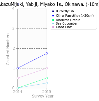 リーフチェック 八重干瀬-4(宮古島) 魚類・無脊椎動物の経年変化