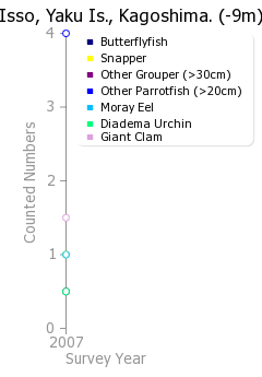 カウントなし:イサキ類(コショウダイ類), サラサハタ, メガネモチノウオ, カンムリブダイ, オトヒメエビ, パイプウニ, シラヒゲウニ, ナマコ類, オニヒトデ, ホラガイ, イセエビ類