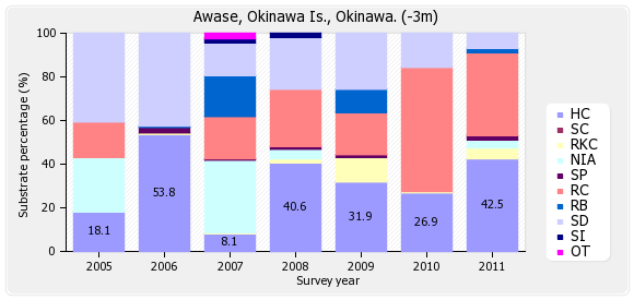 リーフチェック 沖縄本島 泡瀬 (沖縄県) 底質分類の経年変化