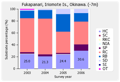 リーフチェック 西表島 外離島南 (沖縄県) 底質分類の経年変化
