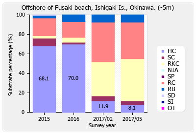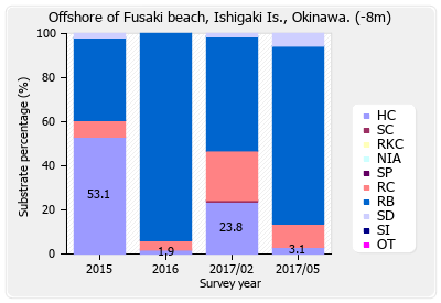 リーフチェック 石垣島 フサキ沖 (沖縄県) 底質分類の経年変化