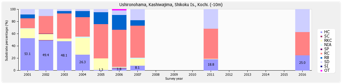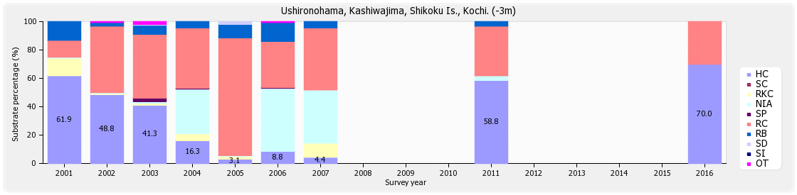 リーフチェック 四国 柏島 後浜 (高知県) 底質分類の経年変化