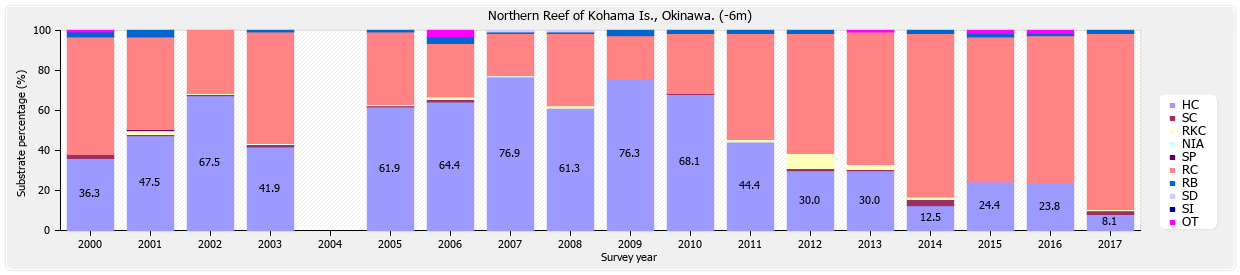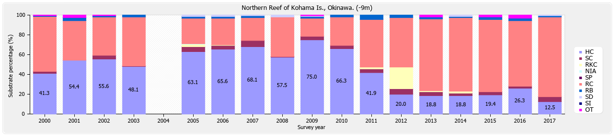 リーフチェック 小浜島 小浜北 (沖縄県) 底質分類の経年変化