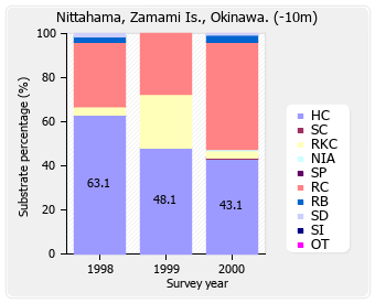 リーフチェック 座間味島 新田浜 (沖縄県) 底質分類の経年変化