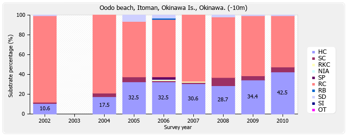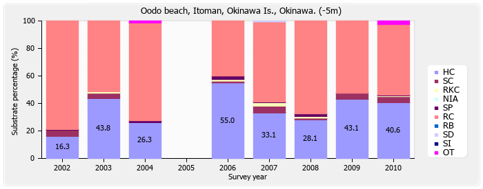 リーフチェック 沖縄本島 大度海岸2 (沖縄県) 底質分類の経年変化