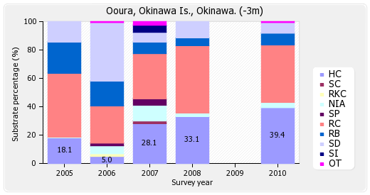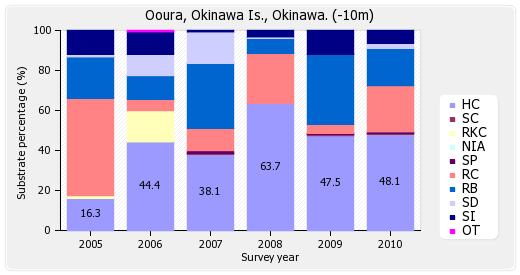 リーフチェック 沖縄本島 大浦 (沖縄県) 底質分類の経年変化