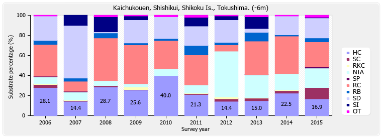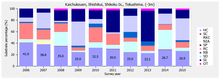 リーフチェック 四国 宍喰 海中公園(100m) (徳島県) 底質分類の経年変化