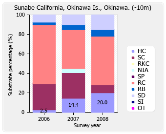 リーフチェック 沖縄本島 砂辺カリフォルニア (沖縄県) 底質分類の経年変化