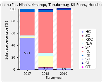 リーフチェック 紀伊半島 田辺 西崎サンゴ・沖ノ島北 (和歌山県) 底質分類の経年変化