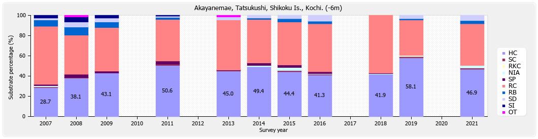 リーフチェック 四国 竜串 赤屋根前 (高知県) 底質分類の経年変化