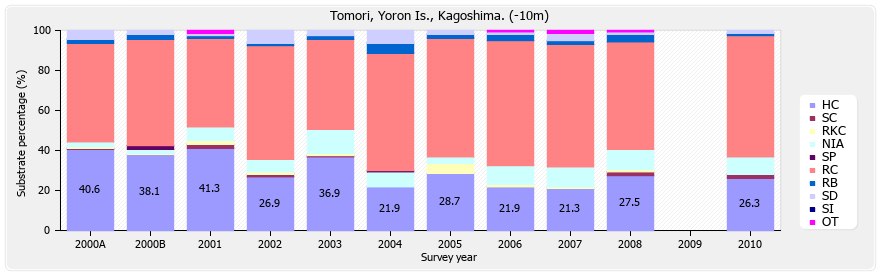 リーフチェック 与論島 供利 (鹿児島県) 底質分類の経年変化