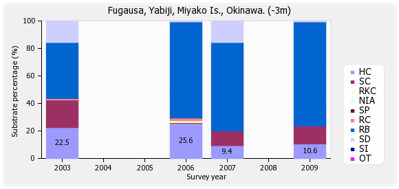 リーフチェック 宮古島 八重干瀬3 フガウサ (沖縄県) 底質分類の経年変化