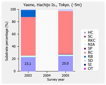 リーフチェック 八丈島 旧八重根港 (東京都) 底質分類の経年変化